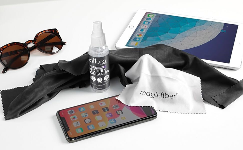 • Comes with two high-quality microfiber cloths that are gentle on screens and effective at removing smudges.